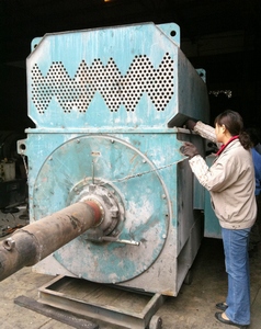 為湖南省湘維有限公司加工制作更換YRKK630-6P/1000KW,電壓10000V繞線式轉子電動機轉子軸,轉子軸總長3400mm。湖南省湘維有限公司下屬一水泥廠所使用的一臺風機電機因轉子軸頭部位有多道拉傷的勾槽,深達1.3mm,用戶自行修復后,電機震動大還是不能夠正常使用。我公司采用更換新軸,壓裝之后校做電機動平衡,達到用戶正常使用要求。 造成軸及軸承室磨損的原因一般有以下4種:軸承缺油或軸承不合格、軸承安裝的不合適、軸加工不合格工作時電機震動大或減震件減震效果不好。 我公司技術力量雄厚,擁有數控車床,加工中心,立車,數控鏜床,龍門刨,龍門銑、卷板機等精良裝備,并具有較強的焊接能力。公司為數十家火電廠、水電站、冶金企業的大修、技改提供了優質的設備安裝調試、售后等一條龍服務。 轉子找靜平衡時在靜平衡臺上進行的,將轉子放在靜平衡臺的軌道上,往復滾動N次,則重的一側必然垂直向下,如此數次的結果均一致,即下方就是轉子不平衡重量G的位置,其對稱方向,即為加平衡重量的位置。 動平衡是在動平衡試驗臺或現場進行的,目前主要有影響系數法和諧分量法。其中影響系數法最常用,對于單平面,可以通過測量原始振動、試加重量后振動,計算影響系數,確定需要加重(去重)的大小和角度。