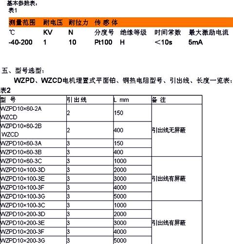 熱電阻分為普通型(WZPD)、屏蔽型(WZPDA)訂貨時需注明,如有特殊要求可與本公司商量訂制。