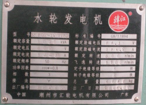相配的水輪機型有:混流式、軸流式、沖擊式。